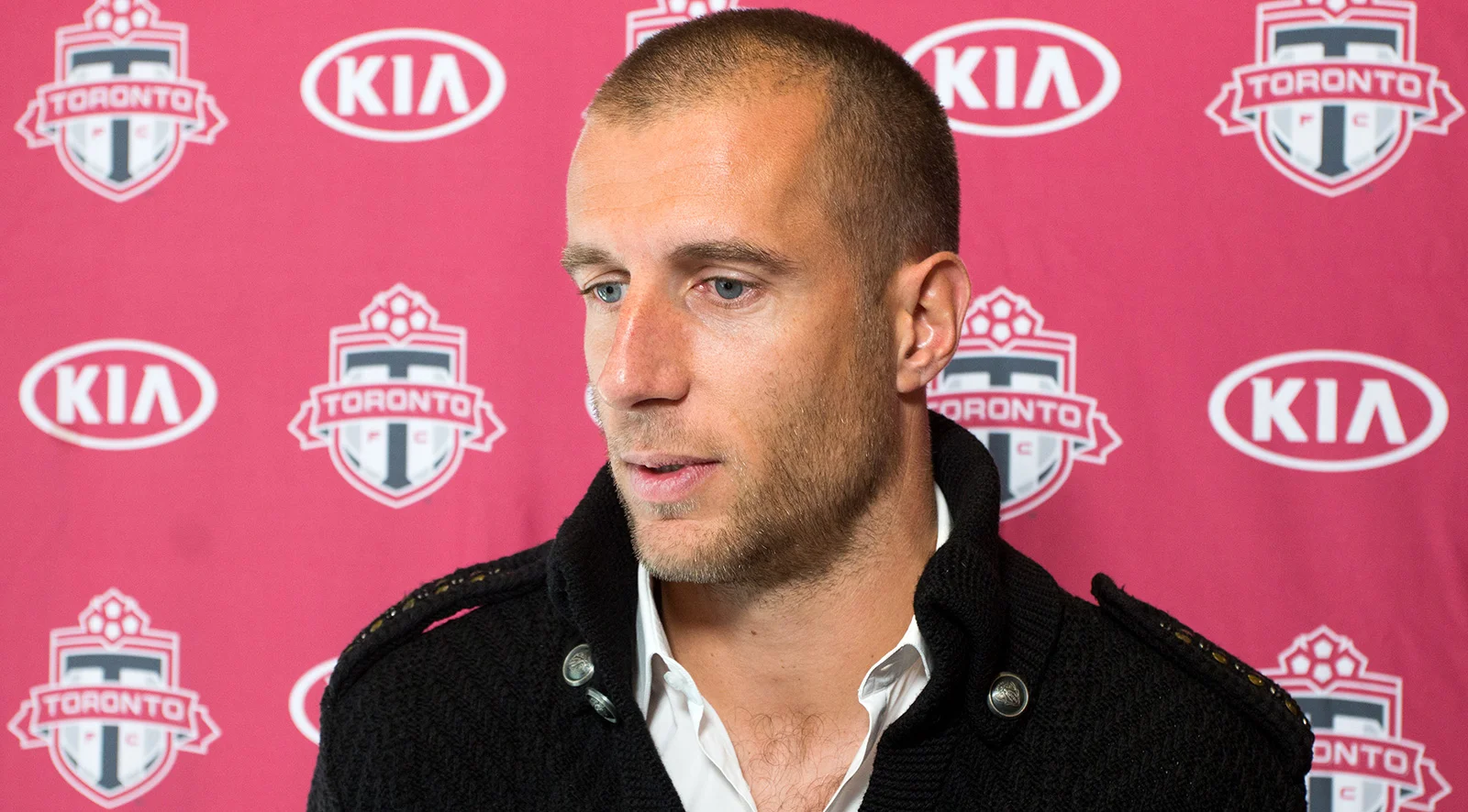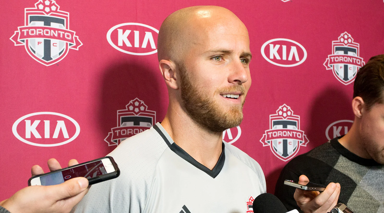 Michael Bradley taking questions during a media scum about the 2016 MLS Playoffs. Photo by Dennis Marciniak